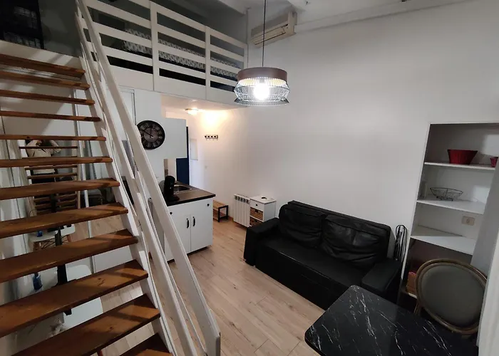 Den 22 m² stora lägenheten ligger några meter bort från Parc Charles De Gaulle. Port de Sète ligger cirka 10 minuters bilfärd från den här lägenheten. En kort promenad från Studio Duplex tar dig till Jardin Antique Méditérranéen.